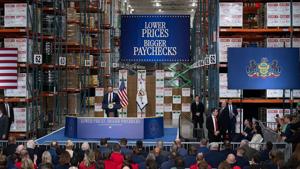 While there, he told a crowd gathered at Uline Shipping Supplies in Alburtis that “his job every single day is to make it so that you guys can have a safe and prosperous life in this country that all of us love.”